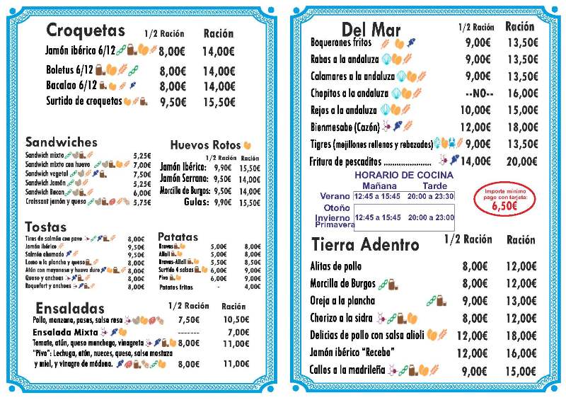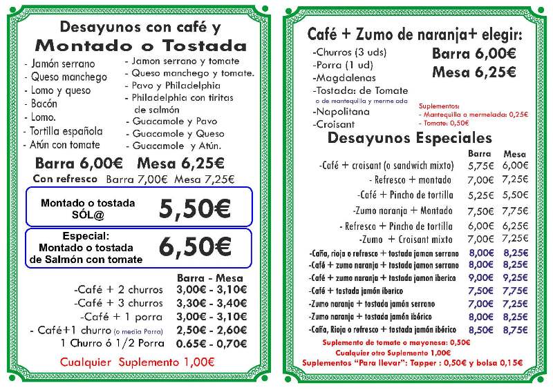AMPLIA CARTA DE RACIONES, TOSTAS, ENSALADAS, PLATOS COMBINADOS, HAMBURGUESAS